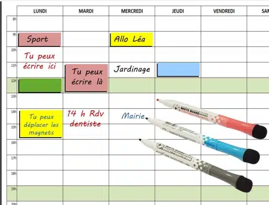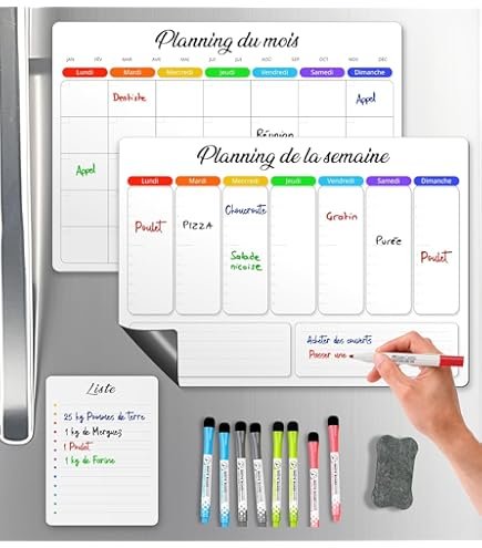 - Surface “Effaçable à sec” : La lamination spéciale permet d’écrire et d’effacer à l’infini avec un marqueur approprié. Parfait pour les menus de la semaine, les rendez-vous ou les listes de tâches.